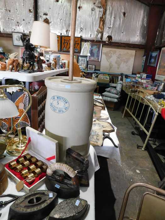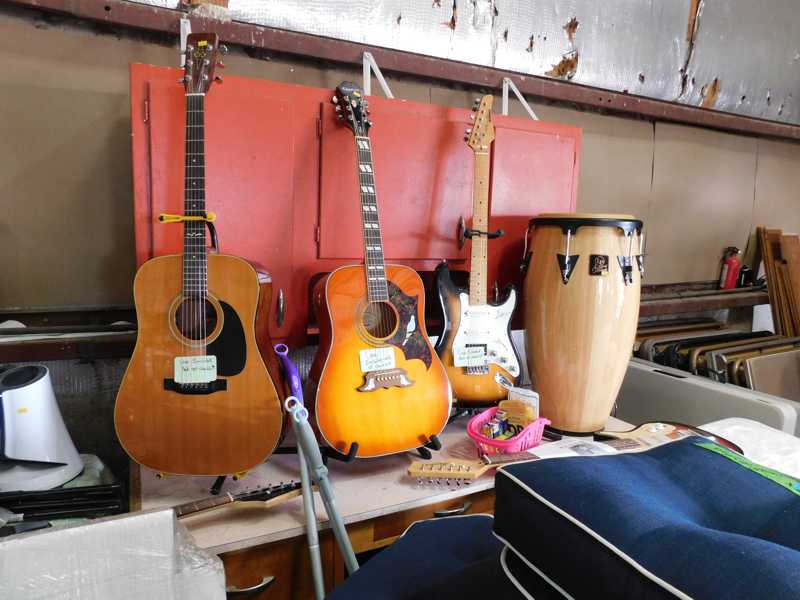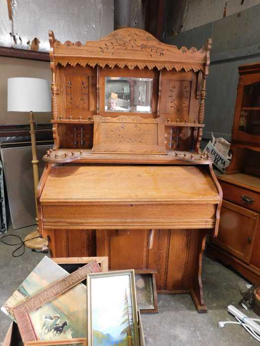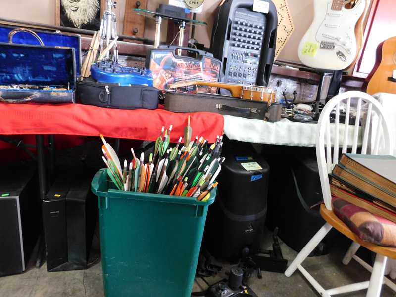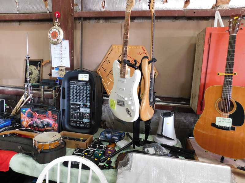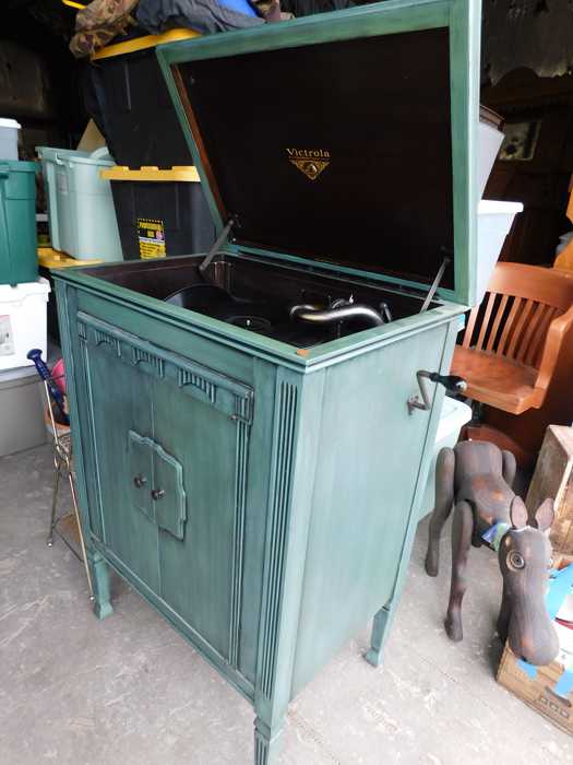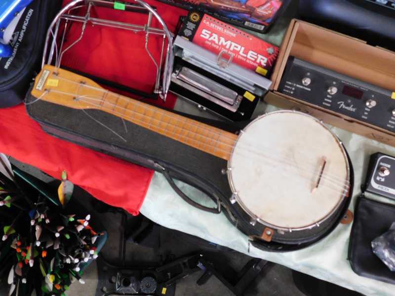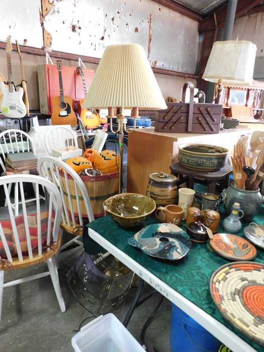 Items this go-round include a Bad Boy Custom Made guitar, A 1880’s Sears and Roebuck Organ, other guitars, a PA system, Amplifiers, a Trumpet, a Clarinet, and a tenor banjo. There is Vintage fiestaware, and Antique Victrola and records, Antique Butter Churn, China Hutch, Tables, chairs, Signed studio pottery, eclectic and antique art, brass gems, wood decor, Christmas Village, vintage Christmas and decor, Halloween spooky decor, linens, pillows, baskets, and woman’s clothing.