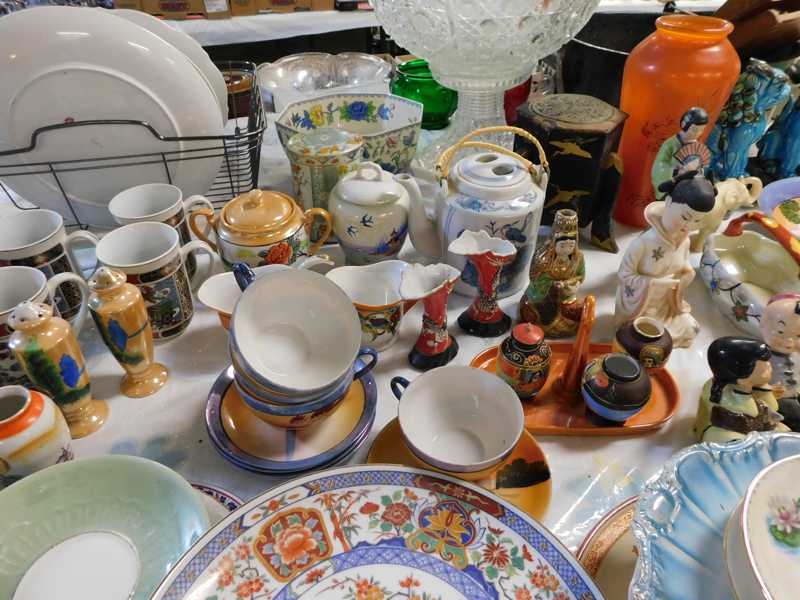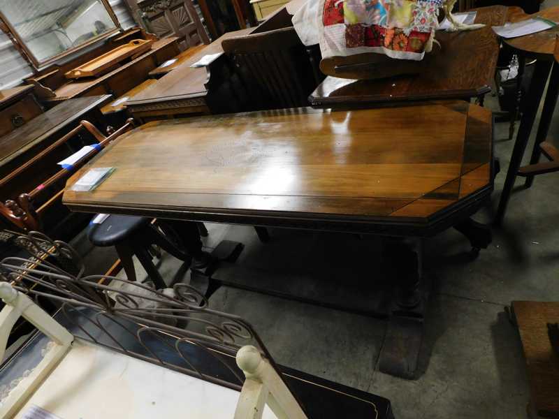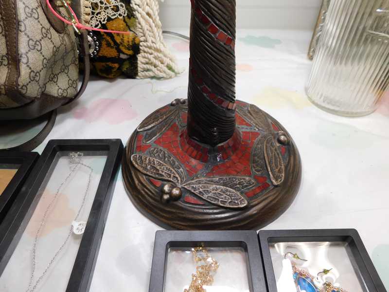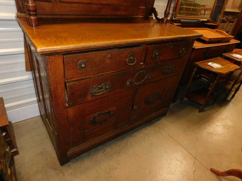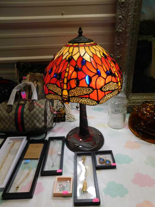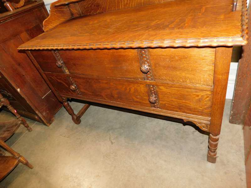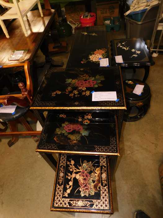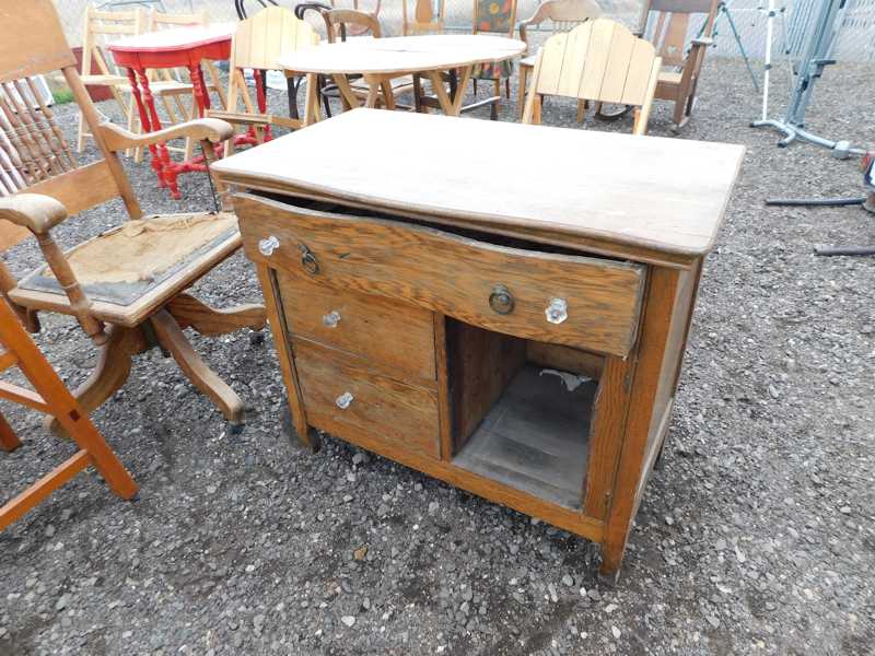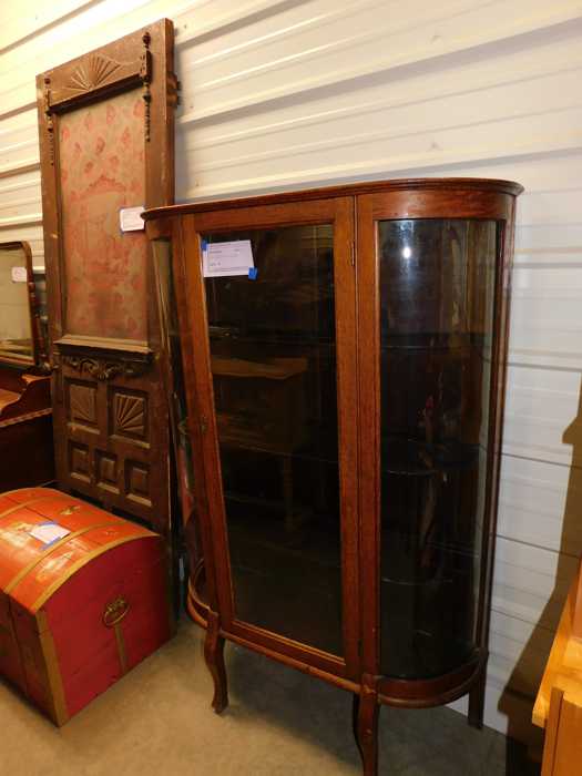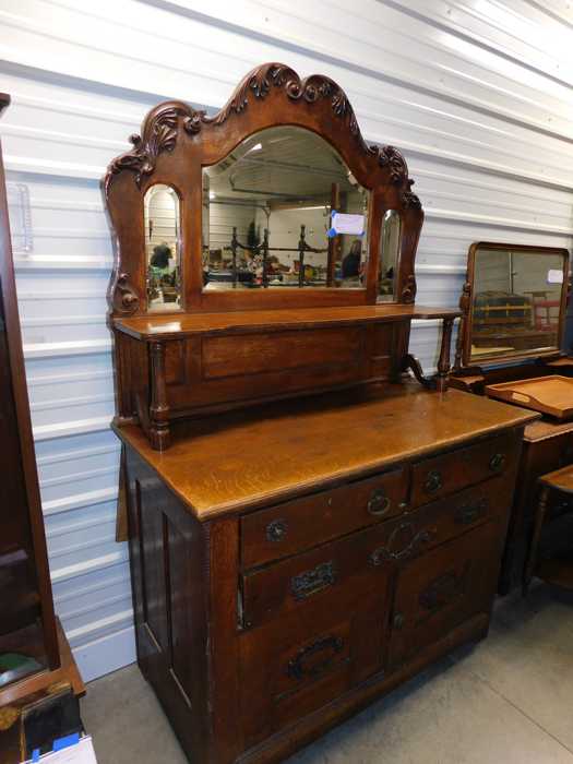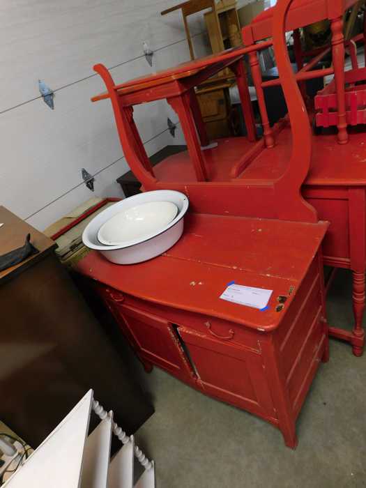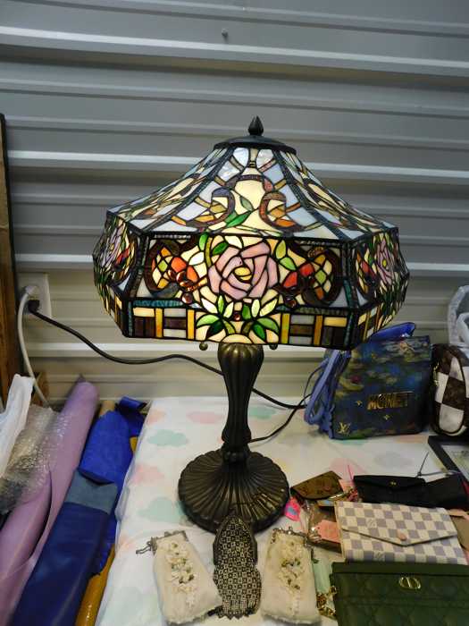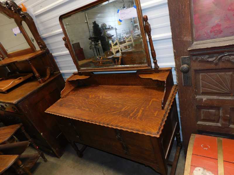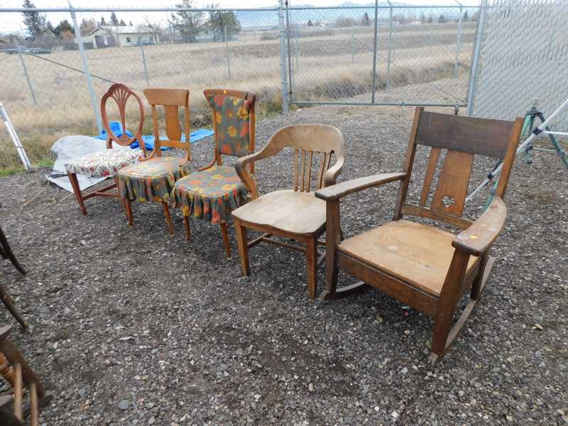 Furniture includes-older curved glass china cabinet, antique buffets, dressers, occasional tables, chairs, 10 antique trunks, gun cabinet, brass bed, tiffany style stained glass lamp, Dragon Fly lamp, antique door with etched glass, painted and furniture projects. Lodge bed and mirror. Cedar Chest, Plant stand, Hall tables. Asian lacquered tables and chests.