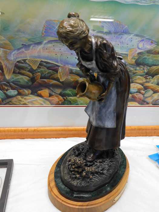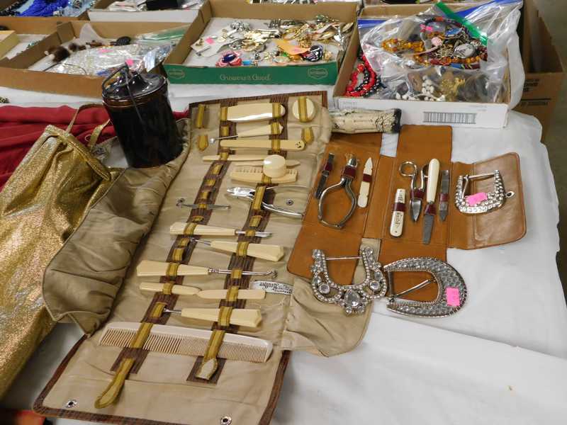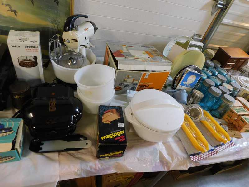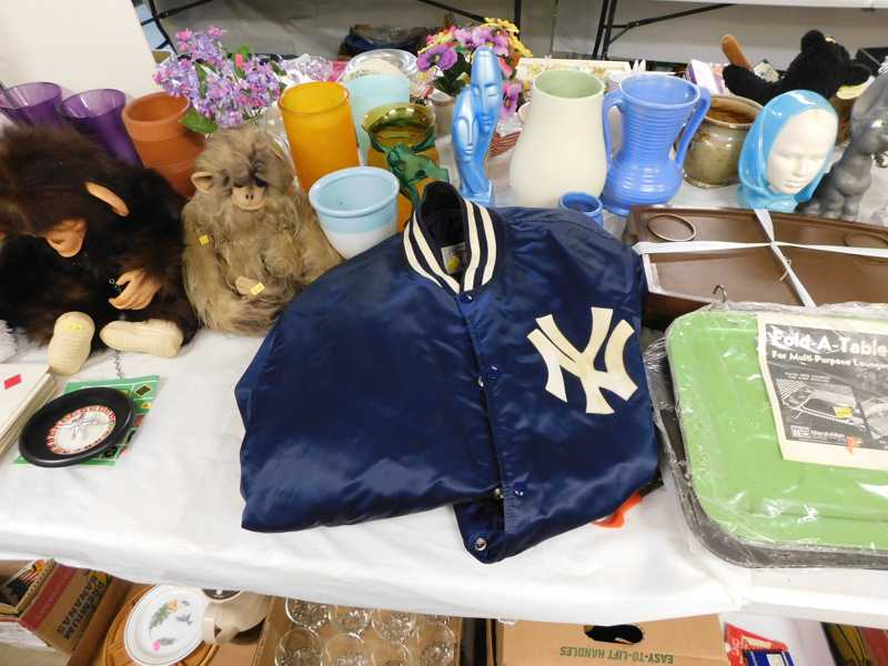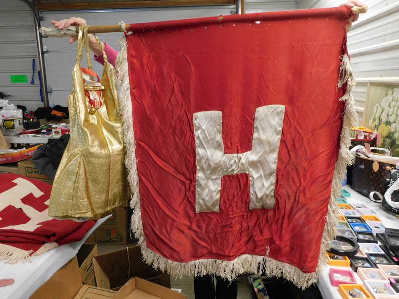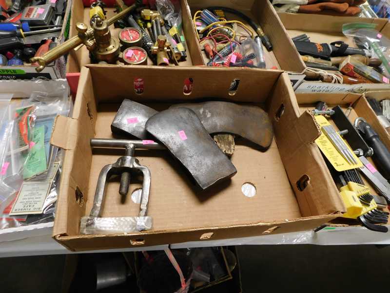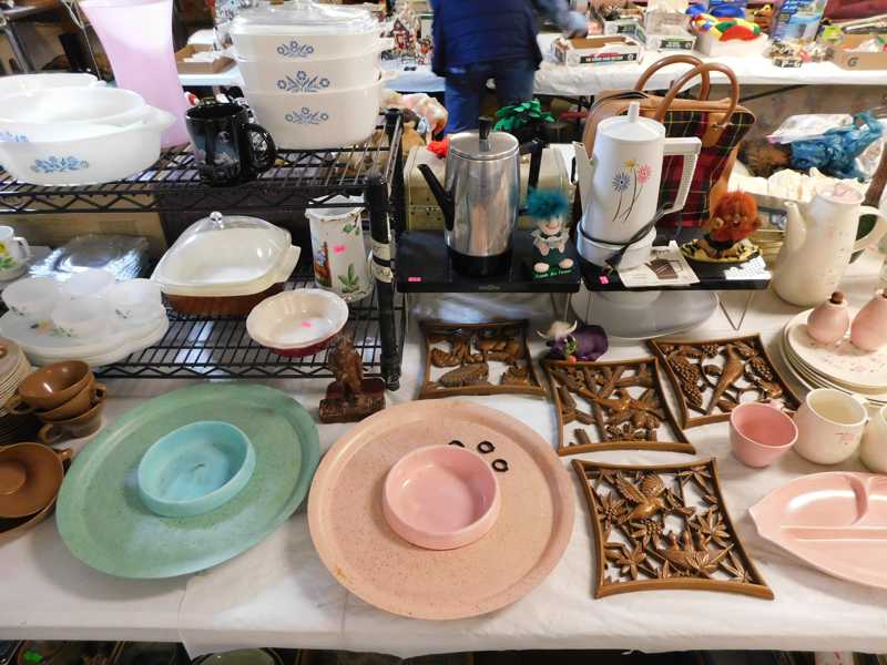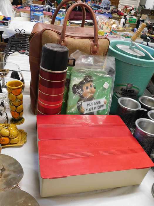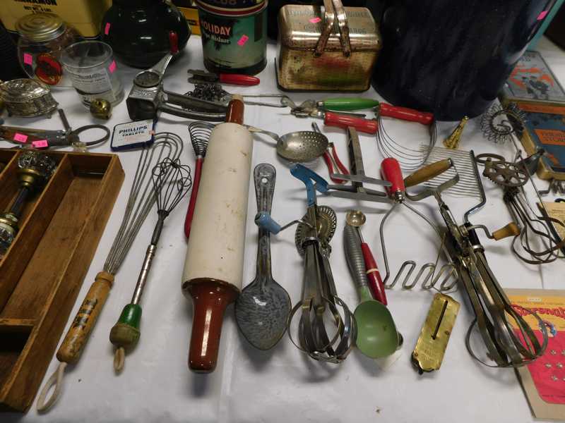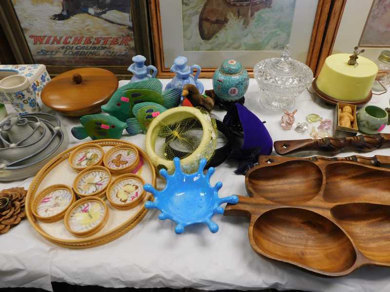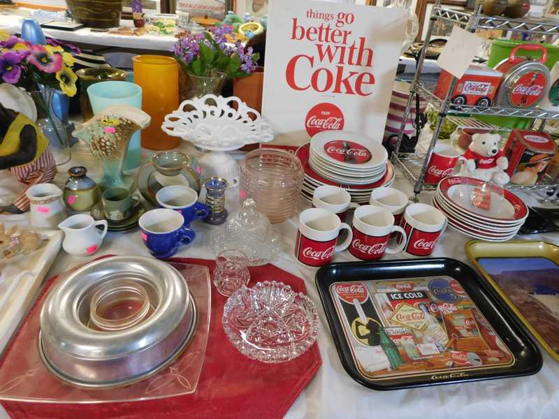 MCM table and chairs, collectibles, antiques, primitives, advertising tins, butter churn, Planters Peanut jar, Coca Cola collectibles, glassware, mid-century items. Housewares and cookware. Art includes Becky Eiker bronze, art prints, Montana letterheads and paper dating to the 1880’s. Clothing some vintage including a great vintage Helena High School twirler’s outfit, shoes, flag and blanket, vintage NY Yankees jacket. Baskets, estate jewelry, watches, books, DVD’s, fun signs, linens, toys, dolls, stuffed animals, old coins and tokens, tools, old woodworking planes, cameras, vacuums, linens, trumpet, and so much more.